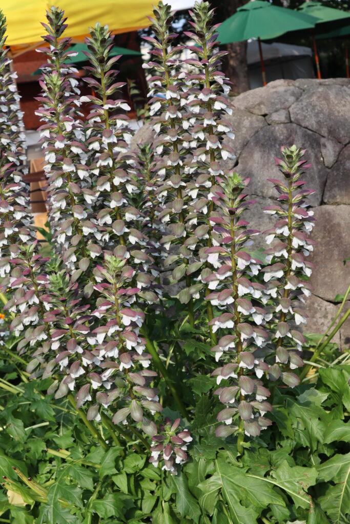アカンサスの花も見つけました。アカンサスの花言葉には、「芸術」「美術」「技巧」など、アーティスティックな表現の言葉があります。これは、アカンサスが古代ギリシャやルネッサンス建築の装飾モチーフとなったことに由来し、花言葉はその存在がどれほど芸術と共鳴しているかを物語っています。